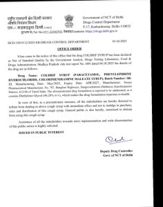 आदेश में सभी हिस्सेदारों और वितरकों को निर्देश दिया गया है कि वे तुरंत सिरप की बिक्री, खरीद और वितरण बंद कर दें। साथ ही आम जनता को भी इसके उपयोग से बचने की सलाह दी गई है।